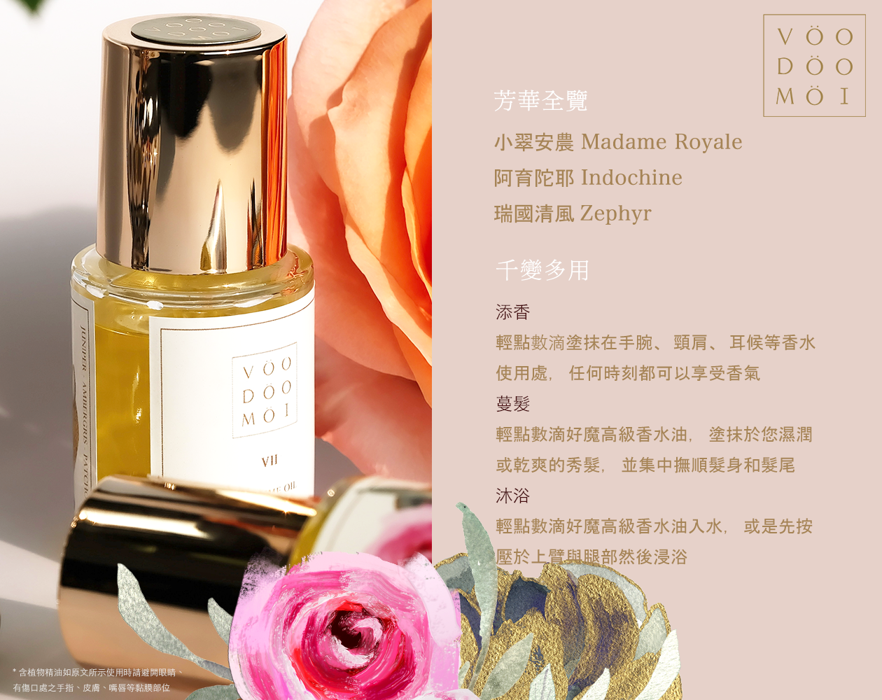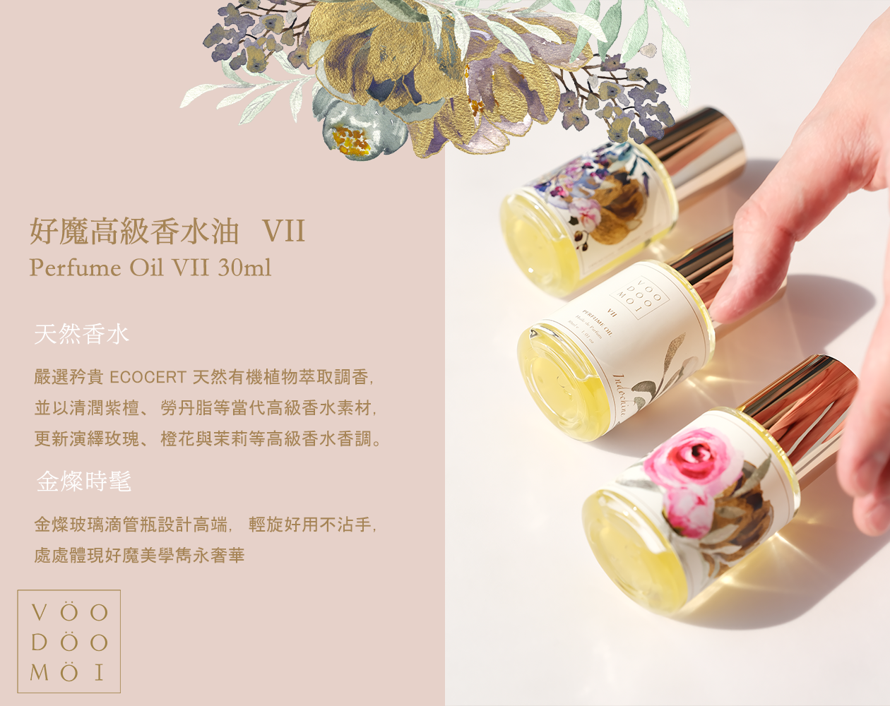 兼備香水芬芳與護膚油滋潤,VÖODÖOMÖI 好魔香水油以全新視角演繹,致敬經典製香。傳奇調香師 Jean-Louis Fargeon 與王后 Marie Antoinette 靈感啟發,年度話題不容錯過!好魔高級香水油全系列三種芳華,奢侈精裝,一次典藏!